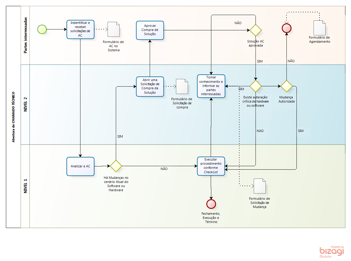 Procedimentos para iniciar, alterar ou terminar o serviço:
