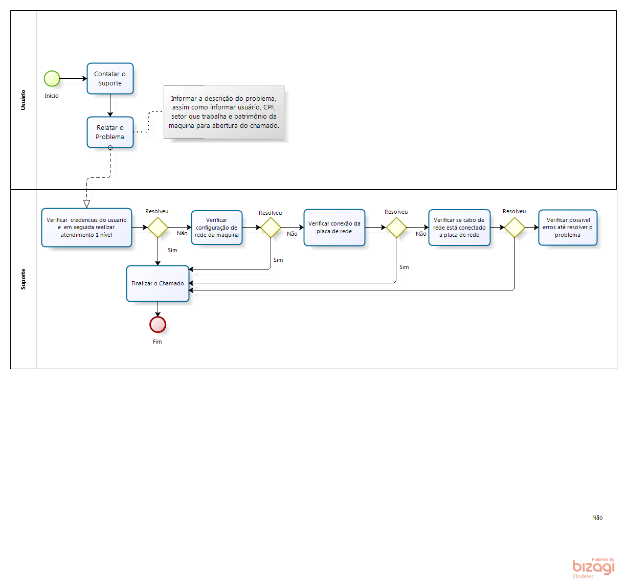 Problema solucionado Problema parcialmente solucionado (acesso a Intranet) Problema parcialmente solucionado (acesso a Internet) Não solucionado |