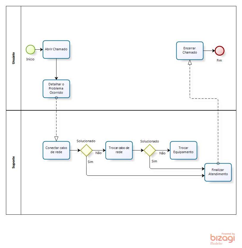 Solucionado (Conexão do cabo de rede) Solucionado (Troca do cabo de rede) Solucionado (Troca do equipamento) Não Solucionado (Rede indisponível) Não Solucionado (Equipamento inoperante) |